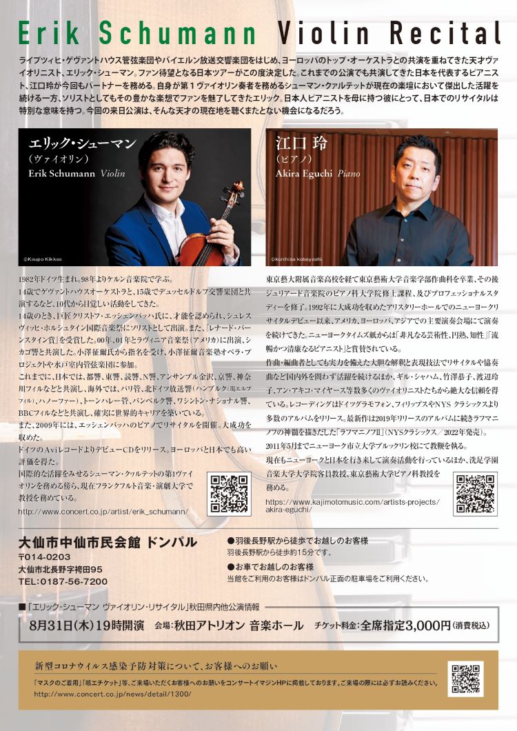 エリック・シューマン(ヴァイオリン)江口 玲(ピアノ)