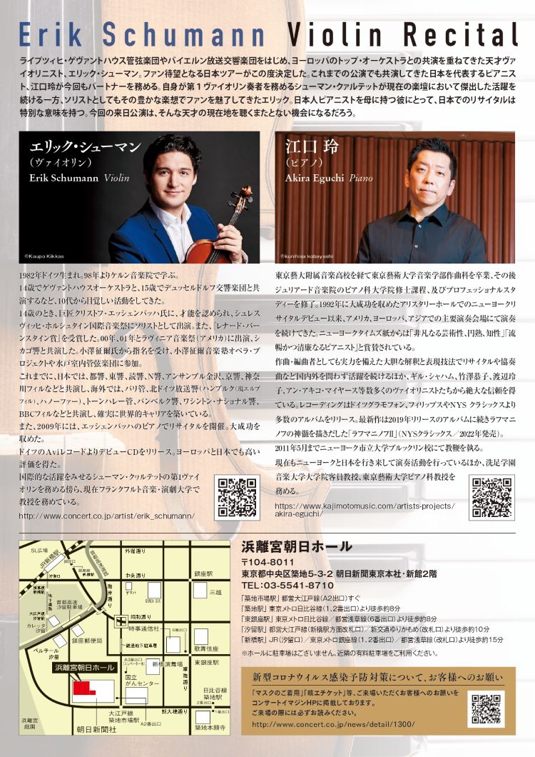 出演:エリック・シューマン(ヴァイオリン)、江口玲(ピアノ)