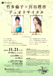 ※こちらのコンサートは竹多倫子さん体調不良により開催中止とさせていただきます。(2014/11/20)